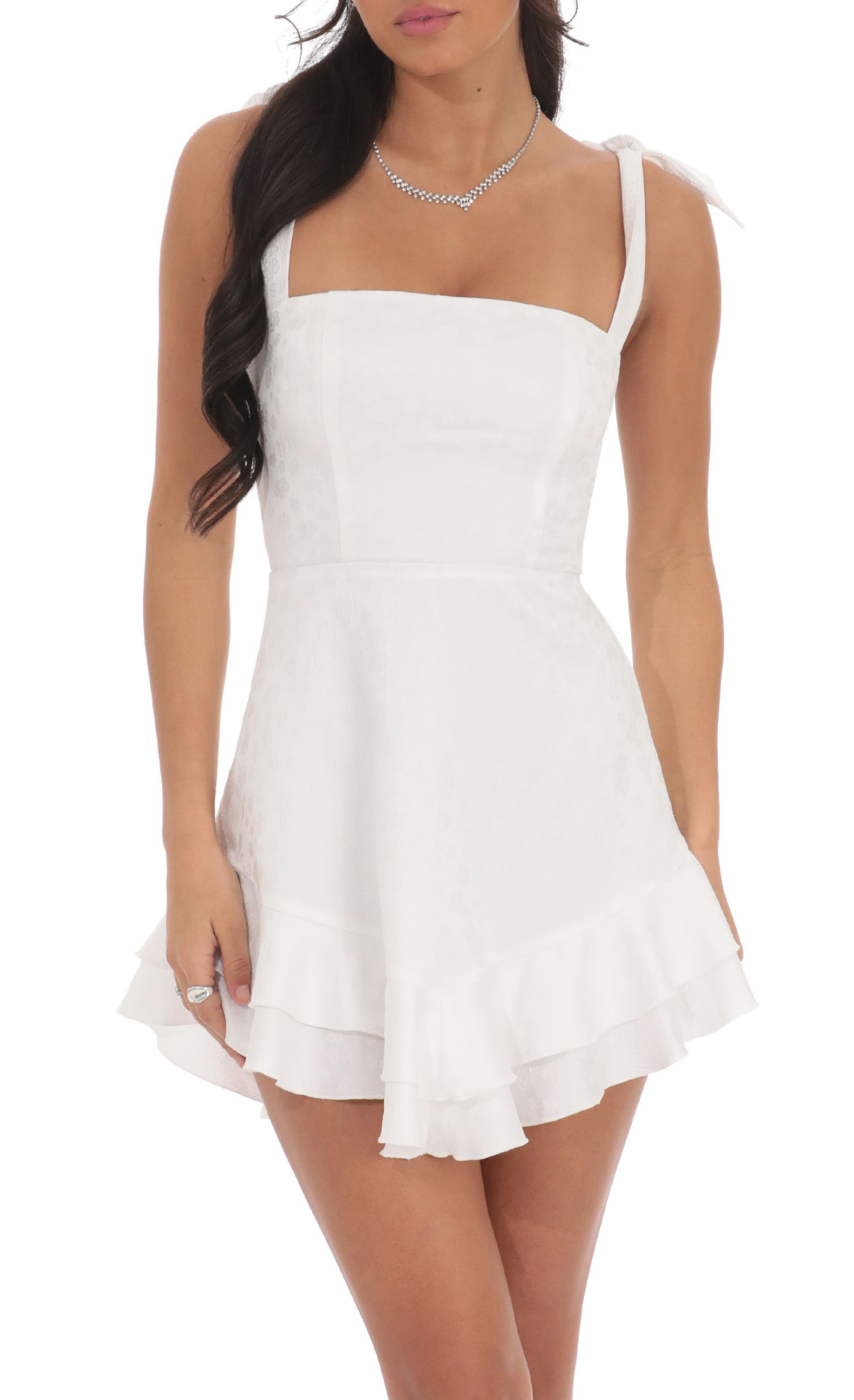 Floral Jacquard Ruffle A-line Dress in White 1091090